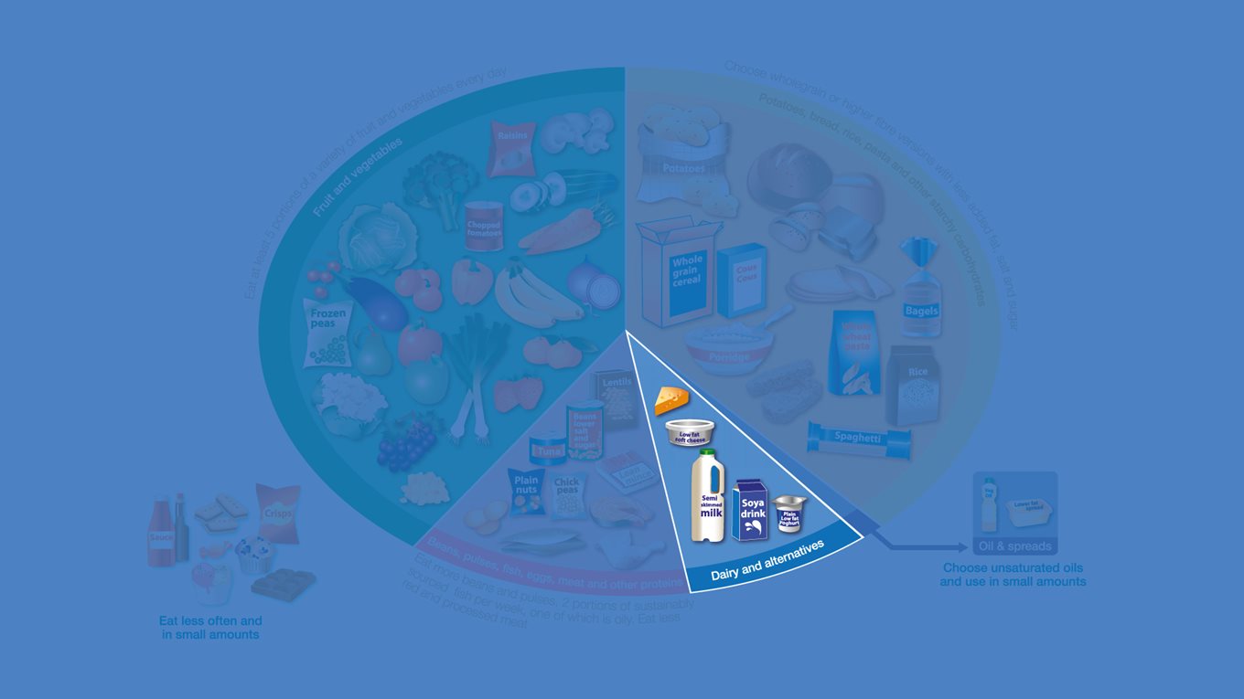 Milk, yoghurt, cheese, quark, fromage frais and cream cheese are the dairy foods that are included. Butter, cream and luxury yoghurts are high in fat and are foods to eat less often and in small amounts. Non-dairy alternatives include plant based drinks, yoghurts and cheeses such as soya milk and yoghurt.