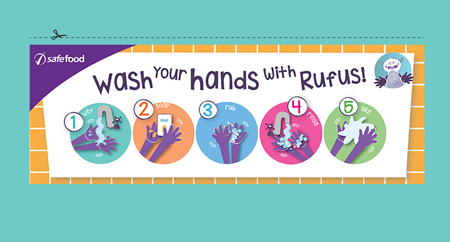 To help children memorise these steps, sing the Rufus song with RTÉjr’s Clara Murray. Repeat it two to three times to make sure your hands are clean.